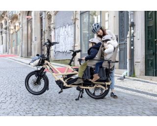 | JEDNODUCHÉ SDÍLENÍ S CELOU RODINOU Sdílení automobilu s manželem či partnerem má svůj význam a u elektrokola by tomu nemělo být jinak. Nákladní elektrokolo Tern GSD S10 G3 je navržené pro snadné sdílení - otočením dvou páček je možné představec a sedlovku během několika sekund nastavit bez použití nářadí tak, aby vyhovovaly jezdcům s výškou postavy od 150 do 200 cm, zatímco nízký stupňovitý rám usnadňuje nasedání a sesedání. |