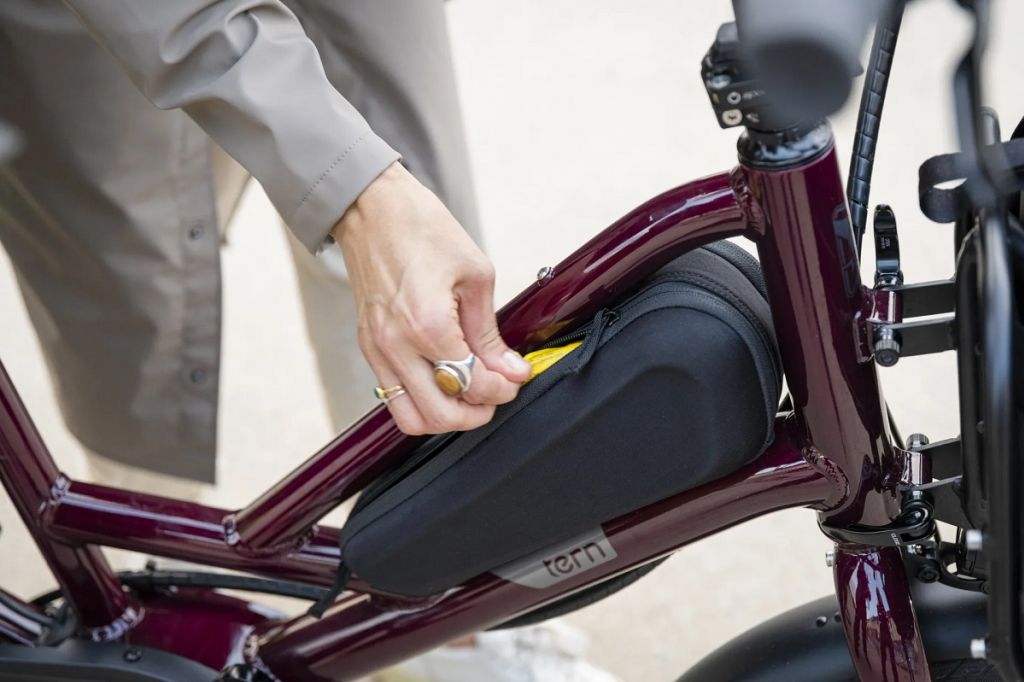 Tern Glove Box je chytře vymyšlená brašnička, která je navržená pro kompaktní kola a elektrokola Tern. Její místo je v rámu mezi horní a dolní rámovou trubkou. Její tuhá konstrukce zajistí, že vždy bez jakéhokoliv "pohupování" zůstane na svém místě. Brašnička Tern Glove Box je vyrobená z voděodolného materiálu EVA. Díky tomu ochrání její obsah před vlhkostí a nečistotami. Proto je více než vhodná pro zámek, náhradní duši, lepení, montpáky, multiklíč a podobně.
