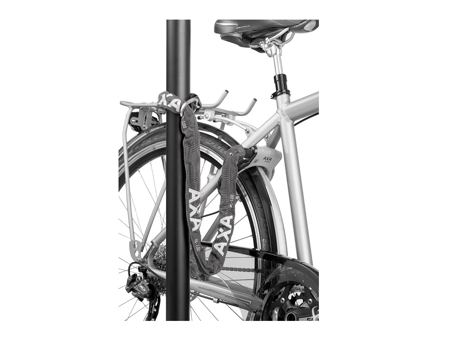 AXA Plug-in RLC 100 Bag je kvalitní přídavný zámek, který je možné kombinovat s integrovaným zámkem AXA Victory. Zámkem AXA Plug-in RLC 100 Bag můžete připoutat jízdní kolo nebo elektrokolo k pevným předmětům a zvýšit tak zabezpečení elektrokola. Silný řetěz zámku je uložený v polyesterovém krytu, má délku 100 cm. průměr 5.5 mm a průměr připojovacího pinu je 10 mm. Součástí balení je praktická podsedlová brašna AXA Saddle Bag umožňující snadný transport zámku.