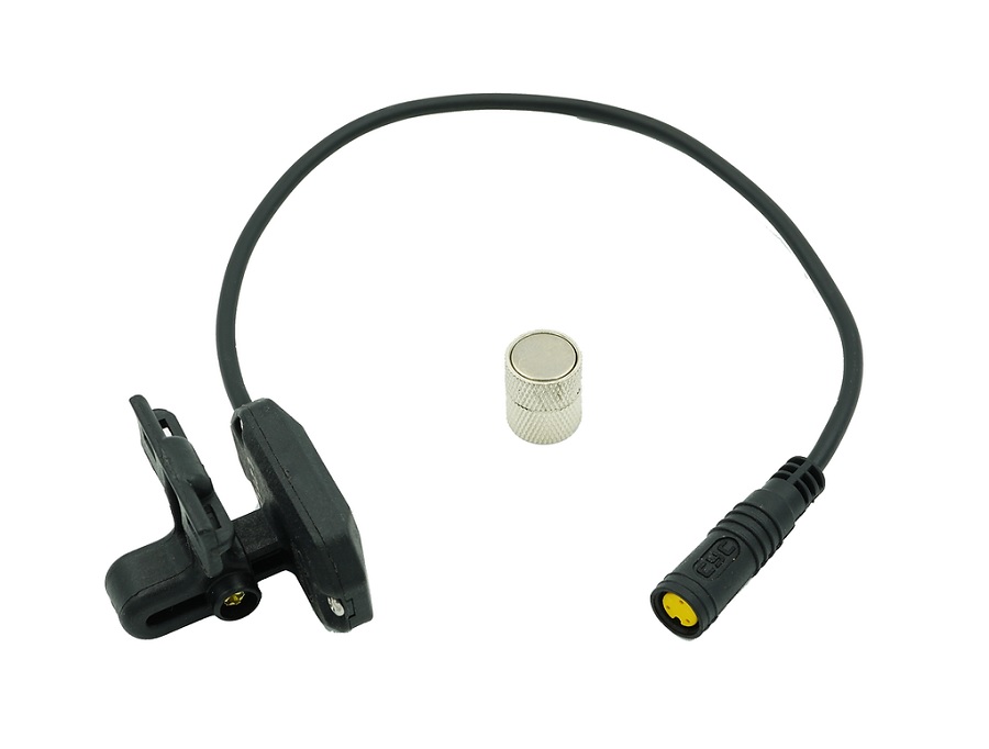 proti vodě a prachu (IP67). K zadní stavbě rámu elektrokola se připevňuje pomocí stahovacích pásek. CYC Magnetic Speed Sensor UART je dodávaný v délce 300 mm nebo 650 mm.
