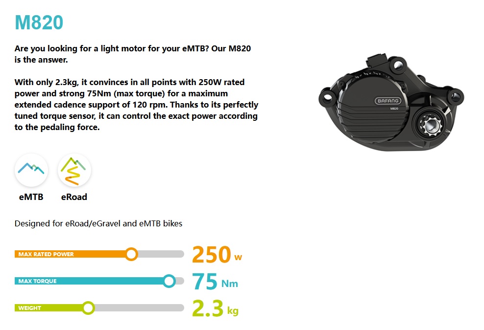 | Pohon | Bafang M820 (hmotnost pohonné jednotky 2.3 kg) |