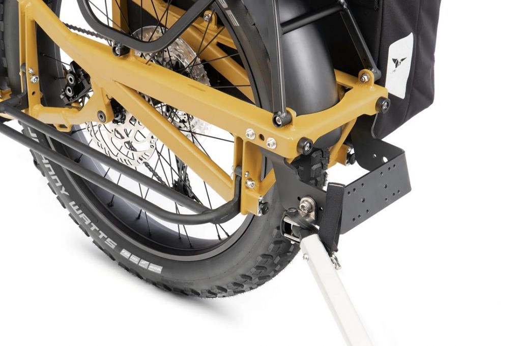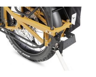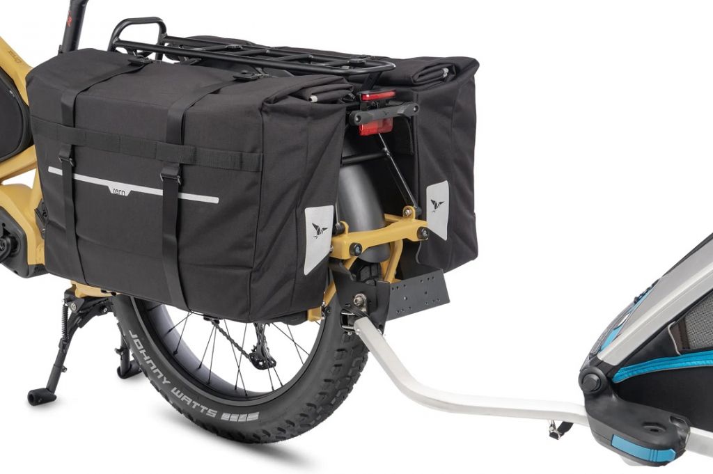 Tern Tail Hitch XL je zadní závěs pro terénní nákladní elektrokola Tern Orox. Napadlo vás někdy vozit ještě více věcí na vašem terénním nákladním elektrokole Tern? Například vaše děti a psa současně? Pomocí zadního závěsu Tern Tail Hitch XL můžete připojit vozík k zadní části a současně používat své oblíbené velké brašny nebo příslušenství ve spodní části nákladního elektrokola. Tímto způsobem můžete vzít celou svou rodinu na jakýkoli výlet se vším, co chcete.
