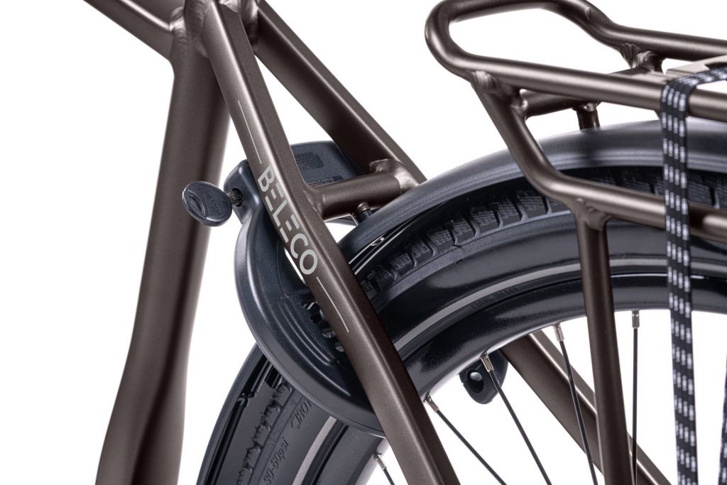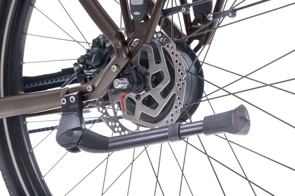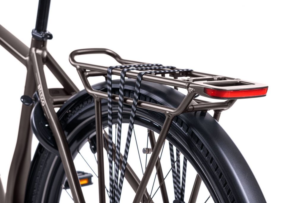 | Doplňky | blatníky (slitina Alu), světla (napájené z baterie elektrokola), integrovaný zadní nosoč MIK System (nosnost 27 kg), stojánek, kryt řemenu, zvonek, odpružená sedlovka, výškově nastavitelný představec, integrovaný zámek |