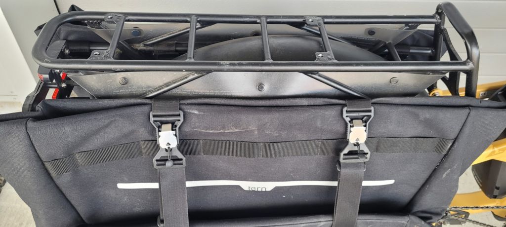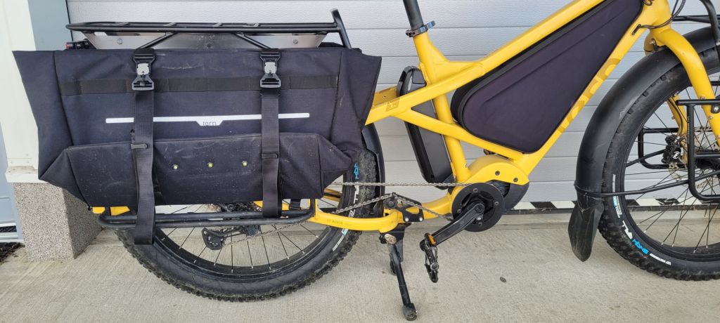 | Doplňky | rámová brašna Tern FramePack, zadní nosič Tern TowBar, stojan Atlas Kickstand XL Cargo (nosnost 100 kg), přední světlo Ignis Headlight 700 Lumens, zadní světlo LED + G-Sensed Brake Light, přední + zadní blatník Heavy Duty Construction |
