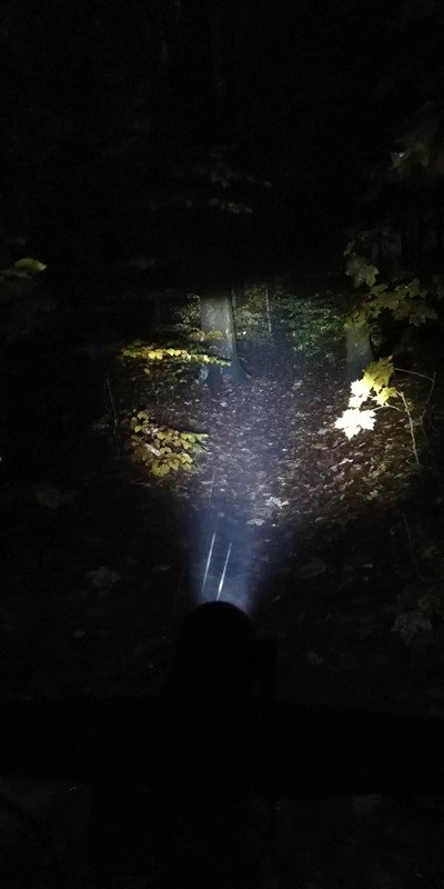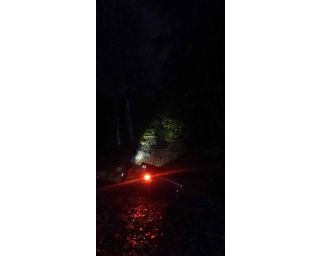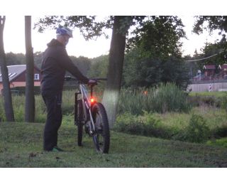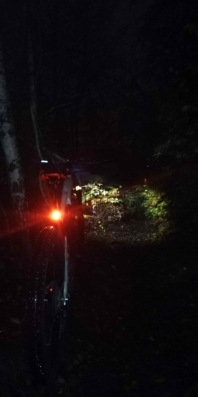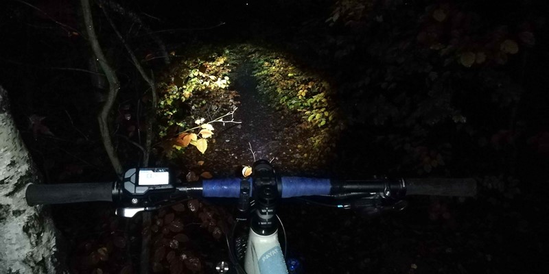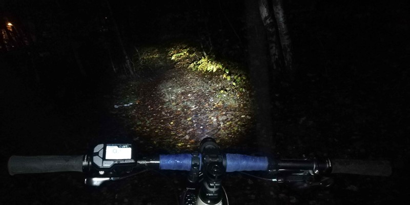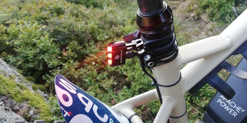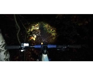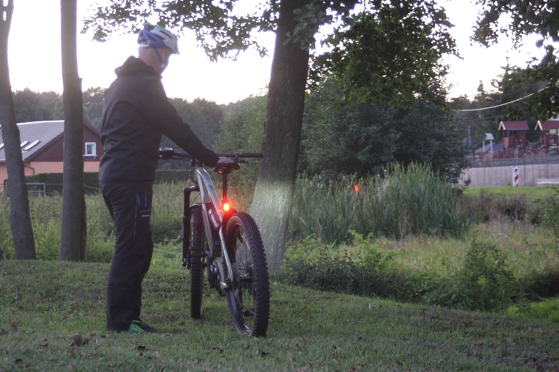 Hned při první jízdě nás velmi příjemně překvapil kužel světla. Ten především díky čočce Terraflux 4 vysílá paprsek světla hodně před jezdce a tam se teprve rozevře bílý světelný kužel. To je oproti ostatním světlům jiné a rozhodně velmi příjemné. Fotografii jsme pořídili za deštivého počasí, a jak je z ní patrné, noční viditelnost je prvotřídní. To, že světlo skvěle svítí za všech okolností, jsme poznali v okamžiku, kdy jsme z trailu vyjeli na silnici. Motoristé nás objížděli s velikým respektem, což přisuzujeme především zadnímu světlu, které dokáže vytvořit intenzivní červený světelný kužel s rádiusem 250°. U předního světla nám také maximálně vyhovovala jeho jednoduchá polohovatelnost. To se skvěle hodilo v okamžiku, když jsme jeho směřování chtěli trochu vylepšit v terénu, posvítit si více do dálky anebo naopak v klikatém kaňonu lemovaném houštinou zase namířit světelný tok více pod kola.