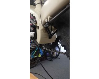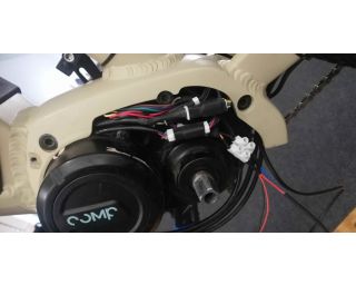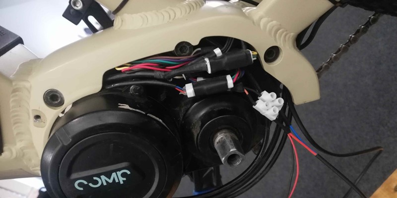 Jak již bylo výše napsáno, světla se připojují do speciálních konektorů, které jsou součástí pohonné jednotky. Proto je potřeba kabely světel k pohonné jednotce nějak elegantně přivést, a kudy jinudy než vnitřkem. Ano, většina moderních elektrokol dnes již má vedení kabeláže pro řazení a zadní brzdu vnitřkem rámu (a u našeho testovacího elektrokola Apache Payat tomu není jinak), takže kabel předního světla protáhneme spodní rámovou trubkou. Poté povolíme a vytáhneme šrouby uchycení motoru, abychom mohli pohonnou jednotku (v našem případě pohon Comp Drive & Vinka) vyklopit a kabeláž světel šla vytáhnout z rámu. V případě zajištění napájení zadního světla je situace o něco snazší. Kabel je v horní části přiznaný a svedeme jej po sedlové trubce až k otvoru pro kabeláž, provlečeme a protáhneme až k motoru.